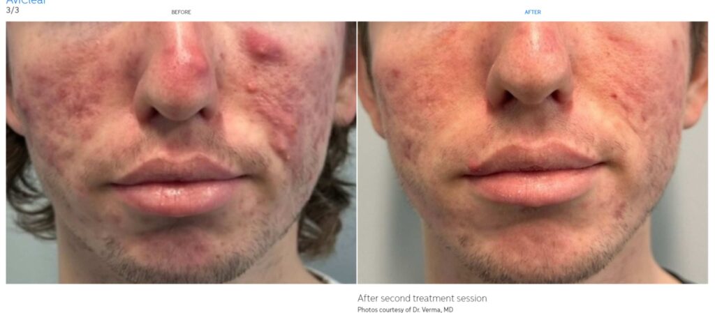 Unlike most traditional acne treatments, AviClear is free of harmful side effects, free of chemicals and toxins, and safe for all skin types and tones. After treatment, mild symptoms such as redness, inflammation and flareups are normal but fade quickly.