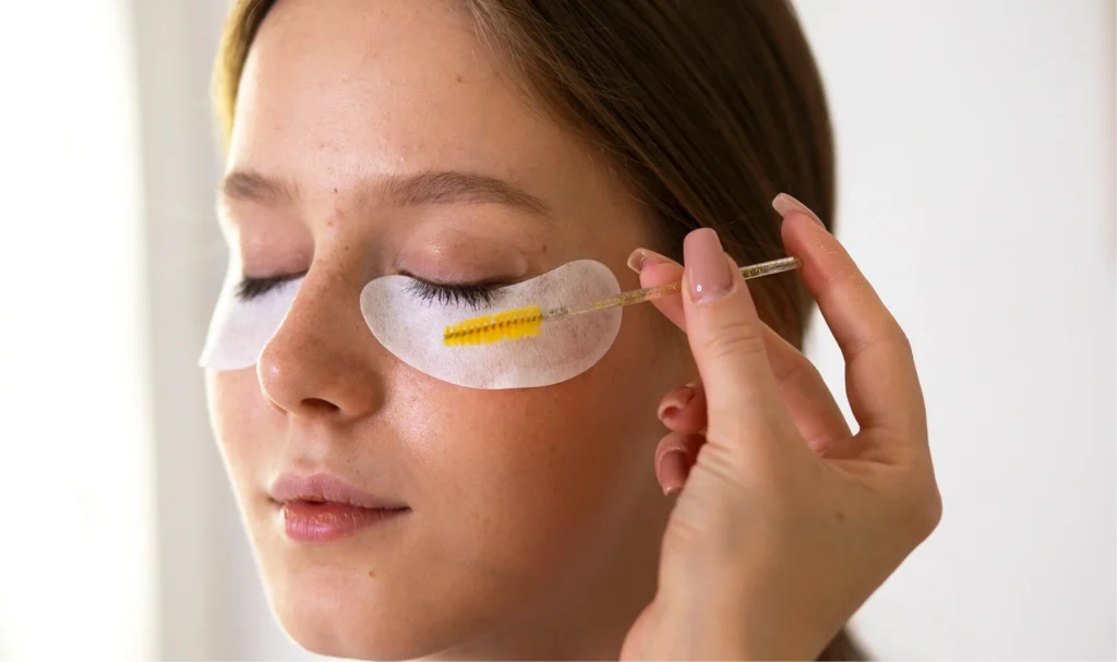 First, lashes are coated with a special adhesive and placed over silicon lash rollers. This holds them in the curled position that you’re hoping to achieve. As you close your eyes tightly shut, a perming lotion is applied to your eyelashes with a tiny brush. The technician then covers your roller-wrapper lashes in plastic wrap and lets is sit for 5-10 minutes. The entire procedure takes up to an hour.