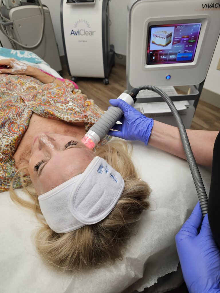 Vivace Micro needling is one of the newest innovations in skin rejuvenation designed for comfort and immediate results. Like many other skin rejuvenation technologies, micro needling uses the body’s natural healing processes to produce more flawless, younger looking skin. Now you can boost the benefits of micro needling by combining it with radio frequency skin rejuvenation for remarkably more profound results. With Vivace receive advanced skincare benefits with an added optimal mask to aid in healing and comfort as well as an optimal serum, a triple peptide serum to enhance your results and skin care benefits.